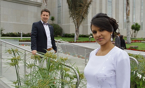 En Bogotá, los mormones disponen de un imponente templo en el sector norte de la ciudad, en donde se celebran los matrimonios de parejas de toda Colombia. Afortunadamente, para el fotógrafo, el templo se halla rodeado de una hermosa zona verde con jardines muy bien cuidados que permiten lograr unas buenas fotos.
