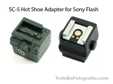 - El hot shoe converter TF-323 de cámara Sony a flash Sony que tiene un conector pc para disparar flash externo vía cable, Este flash externo puede ser uno portátil o bien de estudio.