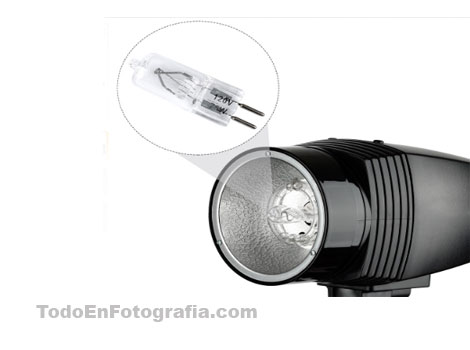 Bombillo tungsteno para modelaje flash estudioBombillo para luz de modelaje de flashes profesionales de estudio como el Godox.