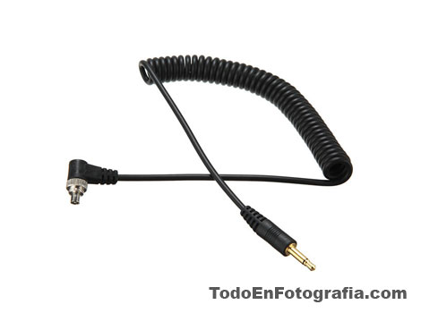 Cable PC de sincronización flash de 3.5mm a macho, en forma de espiral. Este cable sincronizador tiene un puerto de cobre para facilitar el buen contacto y nunca se oxida.