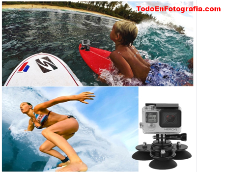 Soporte seguro para sostener su cámara de acción sobre cualquier superficie lisa. Viene con tres chupas o copas que garantizan que su cámara no se va a caer.