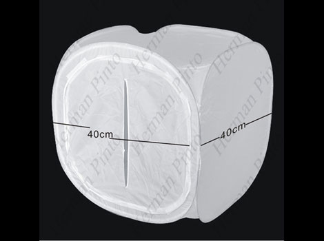 Esta tienda es muy ùtil para la toma de productos pequeños. Simplemente se coloca el artículo o producto a fotografiar dentro del cubo, se ubica culquier tipo de luz por fuera y listo. Las paredes traslúcidas de la tienda producen una agradable iluminaición suave.