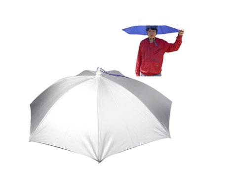 Como lo indica la foto, esta sombrilla o paraguas se sostiene en la cabeza del fotógrafo y , normalmente, vienen en tamaños o diámetros pequeños.