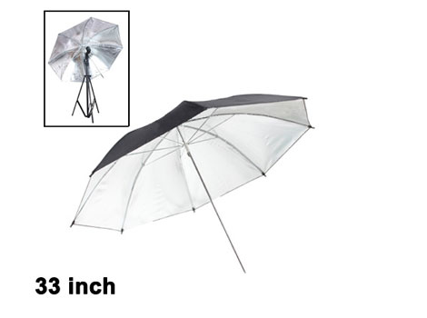 Sombrilla plateada para flashes o luz continua de todo tipo; excelente y práctico accesorio para suavizar las sombras en todo tipo de fotografia. Las sombrillas son una forma fácil y económica de suavizar la luz continua y también el flash.