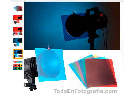 La primera imagen de la galería muestra un juego de filtros pequeños para colocar en la parte frontal de un flash portátil, ideal para cargar en el maletín del fotógrafo de bodas o eventos sociales y empresariales. Claro que para trabajar como fotógrafo profesional de bodas se debería llevar por lo menos un flash de estudio para la toma de las fotos en la recepción. En tal caso, el juego de filtros debería ser el de la segunda o tercera imagen de la galería de arriba.